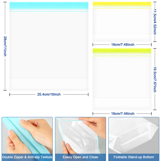 MOREOur reusable freezer bags can lock out freezer burn while keeping food fresh, perfect for freezing meat, chicken, fish, fruits and vegetables.