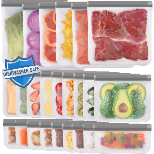 24 Pack (6 Gallon, 9 Sandwich, 9 Snack) Reusable Food Storage Bags