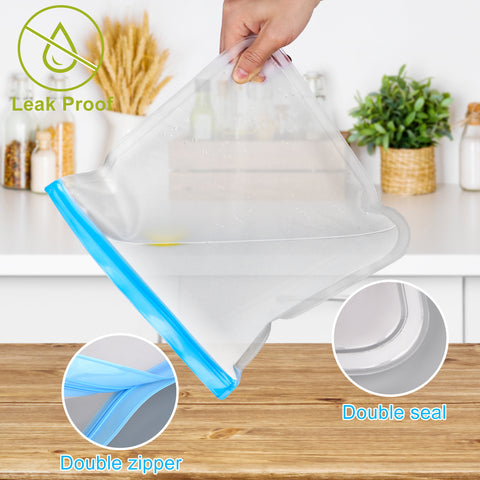 - 👍 [ Upgrade Leak-Proof & Double Sealed ] Upgraded double closures reusable food storage bags include an airtight leak-proof seal that is more sealed, leak-proof, waterproof and hygienic, perfect for storing foods and beverages. Even the children could easily open and close the reusable snack bags.