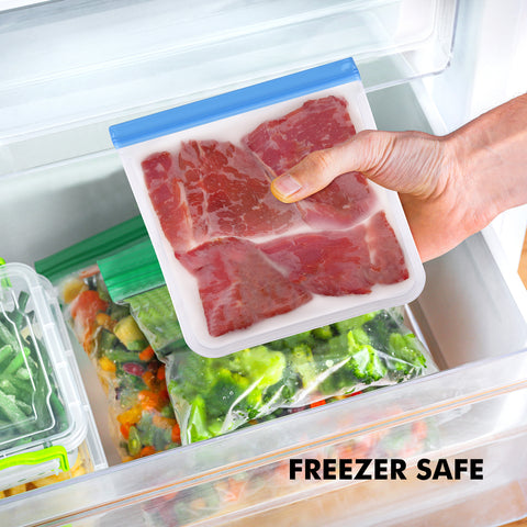 - ♻️ [ Keep Food Fresh ] The reusable freezer bags you will buy can keep away the food from over-freeze while you keeping the food fresh and saving full of taste. Perfect for storing meat, fruits, and vegetables without smells mix up in your fridge.